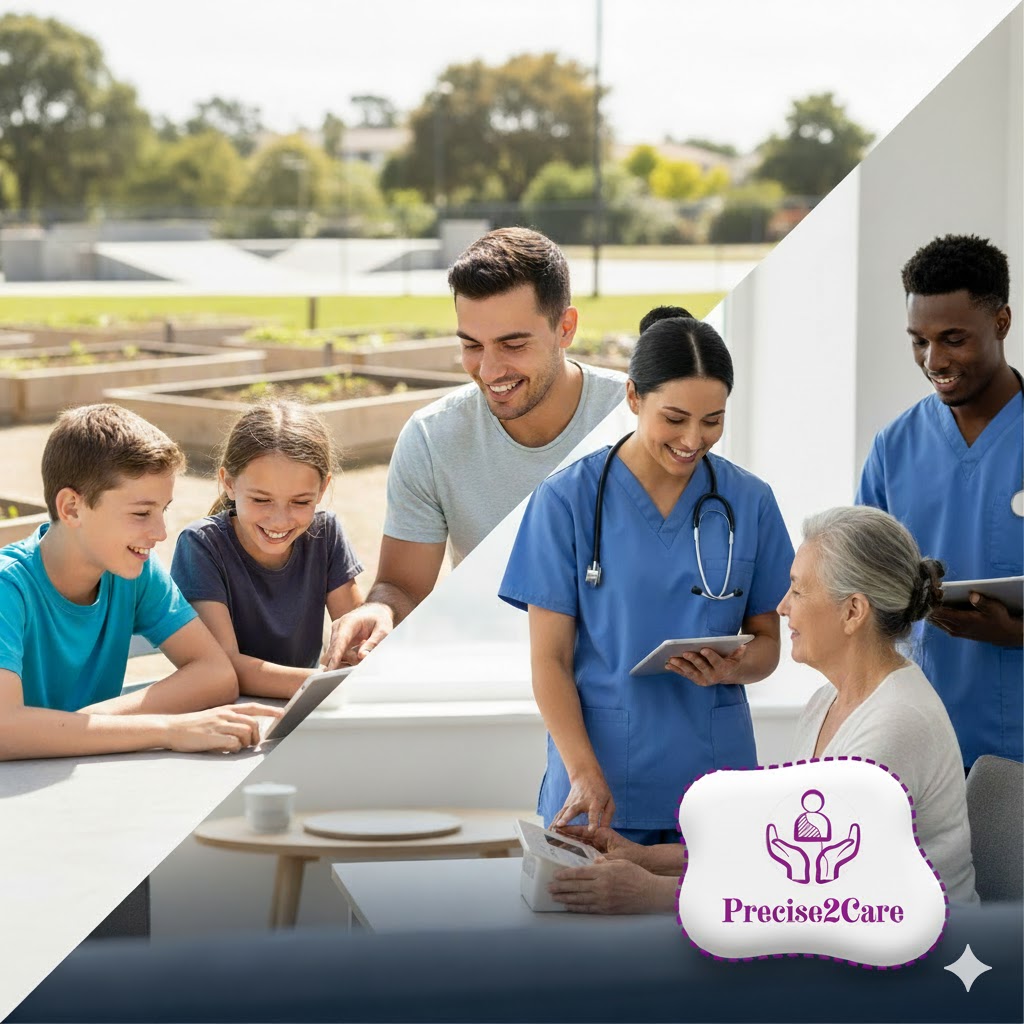 Precise2care is a specialist NDIS provider committed to delivering care that inspires a more hopeful and enjoyable life. We focus on Youth Mentoring (ages 7-18) and future Clinical Nursing Excellence for all ages. Led and provided by experienced professionals, we ensure every participant receives thoughtful, precise, and tailored support.